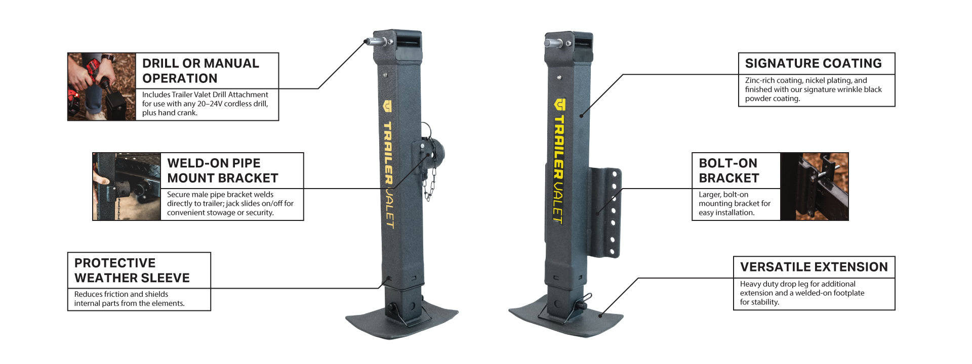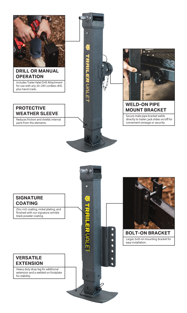 The JX 7K Series sets a new standard for heave-duty trailer jacks, delivering power, reliability, and convenience in one package. With a 7,000 lb. capacity and drill-powered operation, these jacks are designed to make lifting faster, easier, and more efficient than ever.